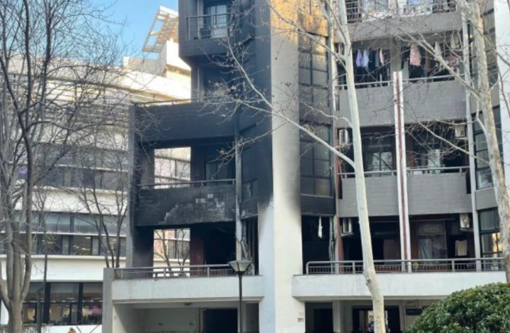从被爆出火灾发生时的视频可以看到,发生火灾的位置是一层楼最靠边的房间,视频中发生火灾的房间,火势较大,已蔓延至阳台,楼下有穿着消防服装的人员正在拿水枪灭火。