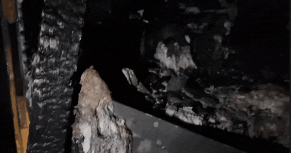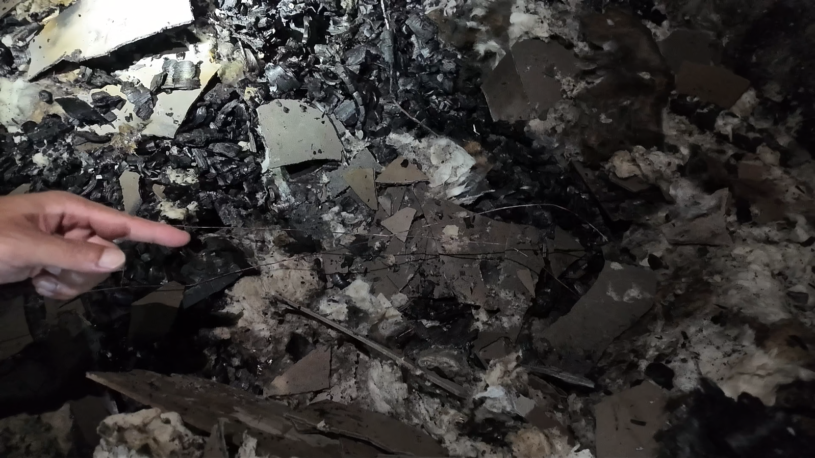 在烧毁的木质座椅下方发现熔断的电气线路 ⇟