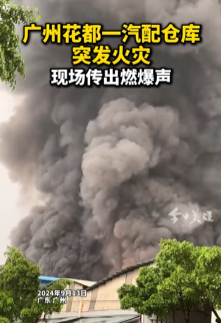 据广州消防消息,9月13日,广东广州花都区一汽配仓库发生火灾。