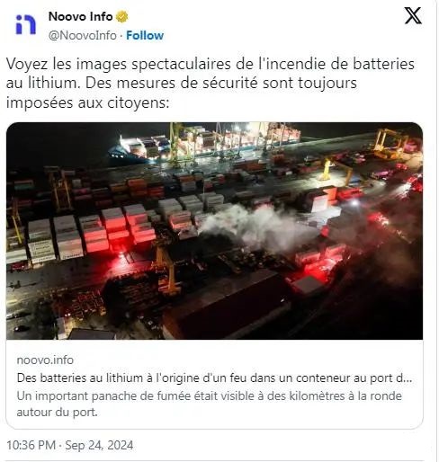据外媒的报道称,当地时间 9 月 23 日(星期一)下午 3 点 15 分左右,加拿大蒙特利尔港码头(Montreal)上一装有 15 吨 锂离子电池 的集装箱着火。