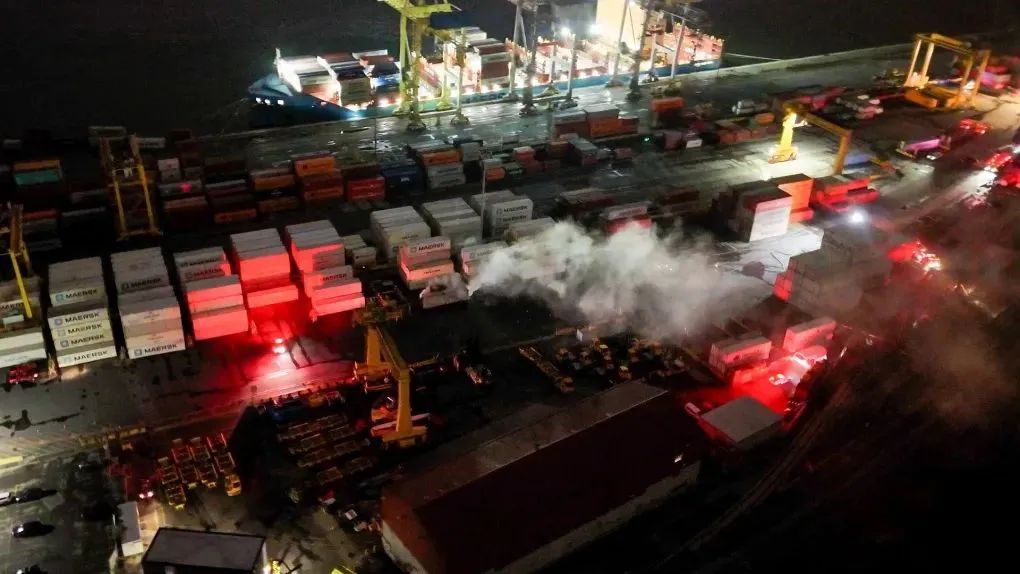 据消息人士称, 一名值班人员发现一个 40 英尺集装箱冒出浓烟,该集装箱装有用于电动汽车(主要是四轮车)的锂电池。