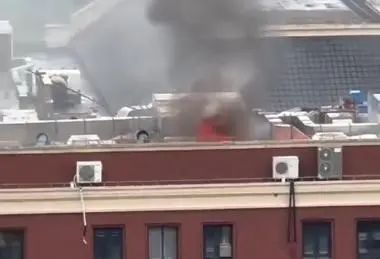 看到学校北食堂顶部有明火蹿出