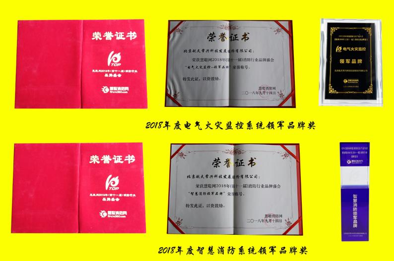 2018年9月14日,北京航天常兴董事长杨迺文先生、总经理王德坤女士参加在北京九华山庄举办的“2018年度慧聪网(第十一届)消防行业品牌盛会颁奖盛典。航天常兴一举荣获电气火灾监控产品、智慧消防产品领军品牌两个殊荣!
