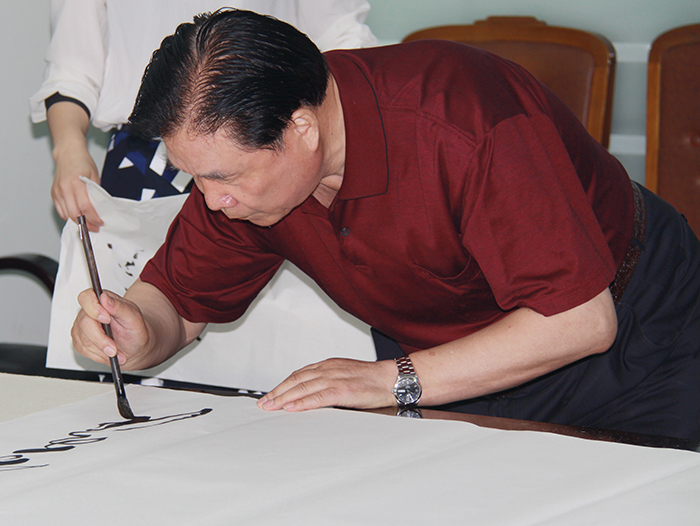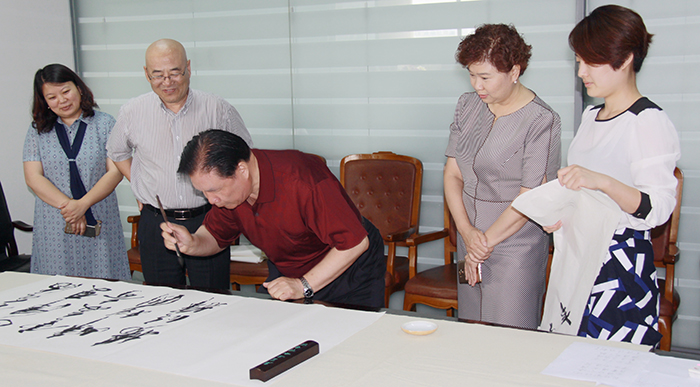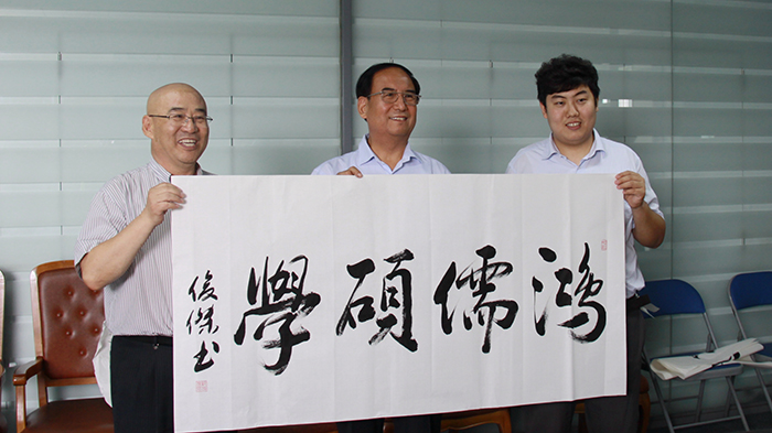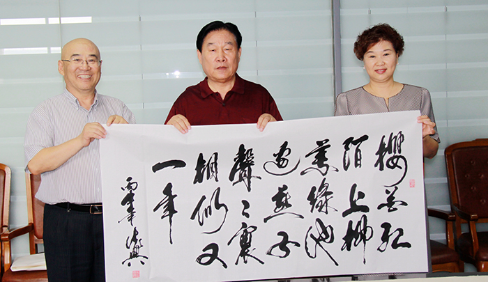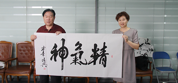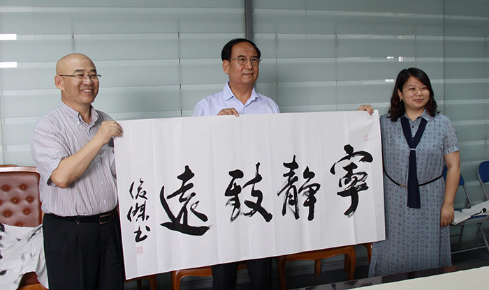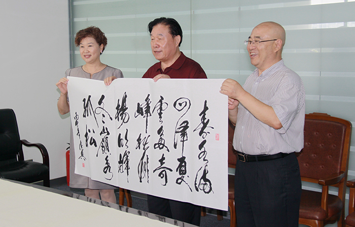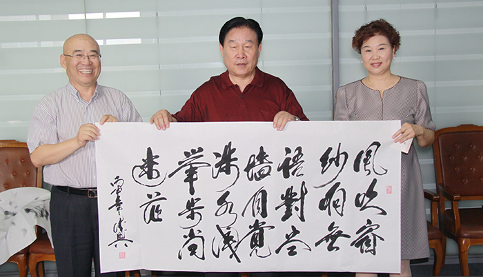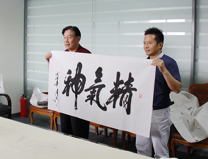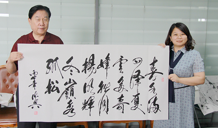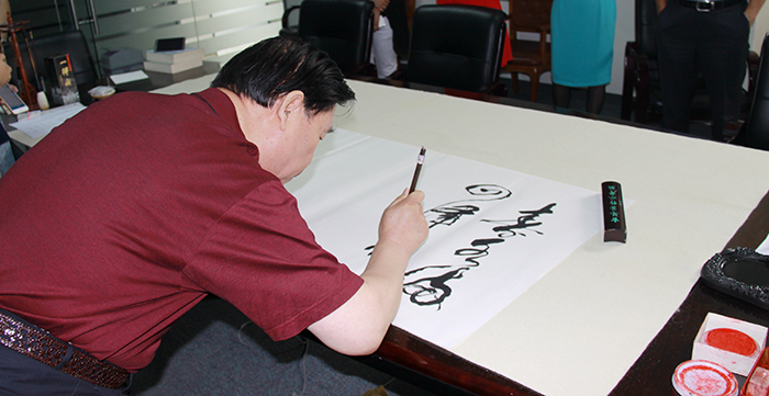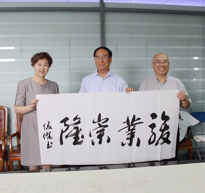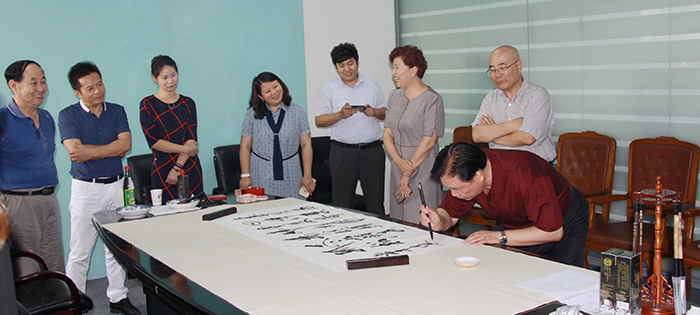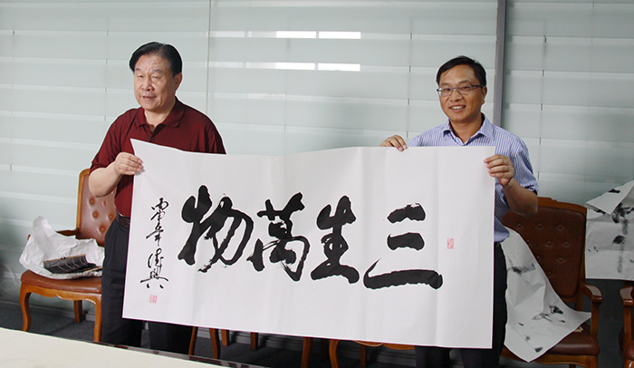 董事长杨迺文先生即兴作诗一首,由王书记提笔赐墨,表明创业艰难,现如今可以笑谈“双创”,创新、创业、创品牌。