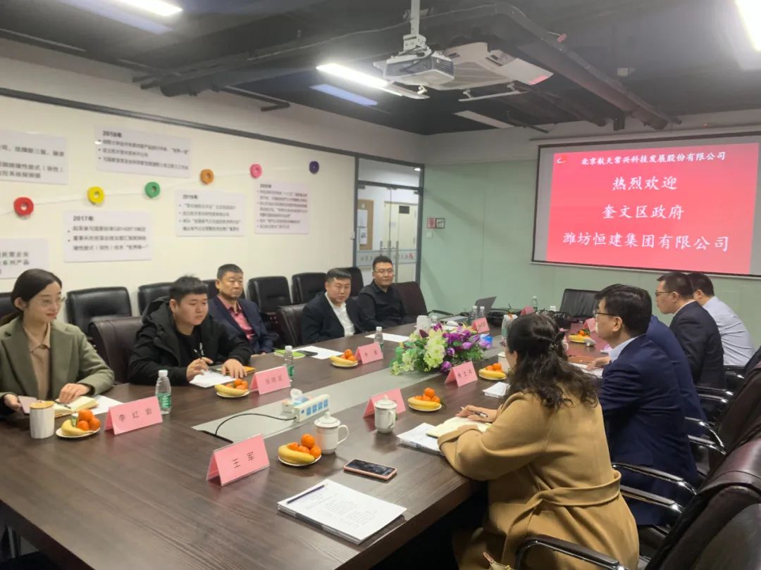 2022年3月5日,潍坊市奎文区政府副区长陈一洲和恒建集团董事长朱兰冉等领导莅临航天常兴考察。通过对航天常兴各方面了解,为推动潍坊市在公共安全领域减少电气火灾发生隐患打造了良好的基础。双方在合作方面达成了一定共识,内容包括共同研究国家课题和奖项来顺利推动科技成果转化;对新建小区早期规划电气火灾防控系统,对当地老旧小区进行相应改造,做好标杆并起到示范作用;在潍坊产业园区积极推广电气火灾监控系统,为各类企业在用电方面解决新建及改造难题;在区级的良好示范效应带头下,由点到面推广至市级及省级范围,为企业发展和人民生活打造出一个更为安全稳定的发展环境。