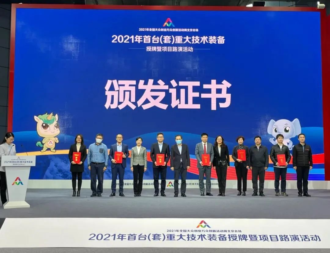 重大技术装备是国之重器,事关综合国力和国家安全。10月22日下午,由北京市首台(套)重大技术装备统筹联席会办公室、北京市发展改革委牵头组织的2021年全国双创周北京会场“首台(套)重大技术装备授牌暨项目路演活动”在中关村国家自主创新示范区展示中心成功举办。由北京市发展改革委高技术处处长赵英俊主持,北京市政府副秘书长刘印春及北京市发展改革委等单位相关负责人向首批首台(套)企业颁发了证书。