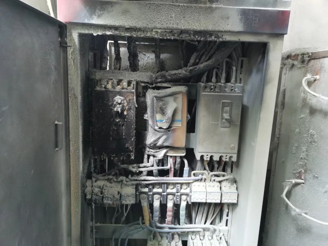 通过与该商户老板沟通得知,老板在接到中心值守人员的告警电话后,立刻通知厂内人员查看,厂内人员接电话从屋里出来看见配电箱处已经冒烟伴有明火,紧接着切断电源并拿灭火器进行灭火,随后中心巡检人员陆续赶到进行后续处置。